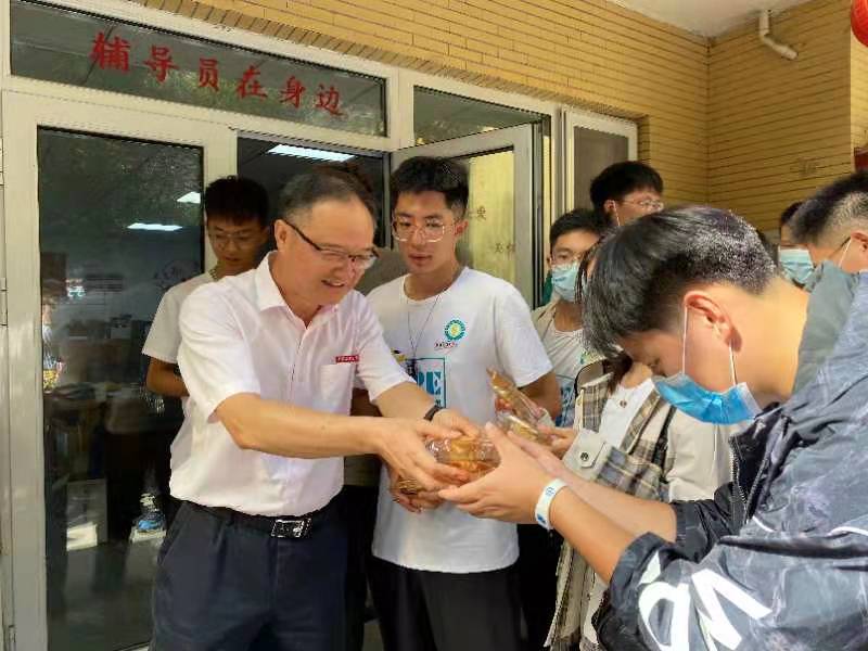 为了让新生更好地度过进入大学的第一个中秋节,9月21日上午,88858cc永利官网党委书记伍小杰、党委副书记于基伯与新生辅导员老师们在松三电力党工委为新生发放月饼慰问品,代表学院送上中秋佳节祝福。