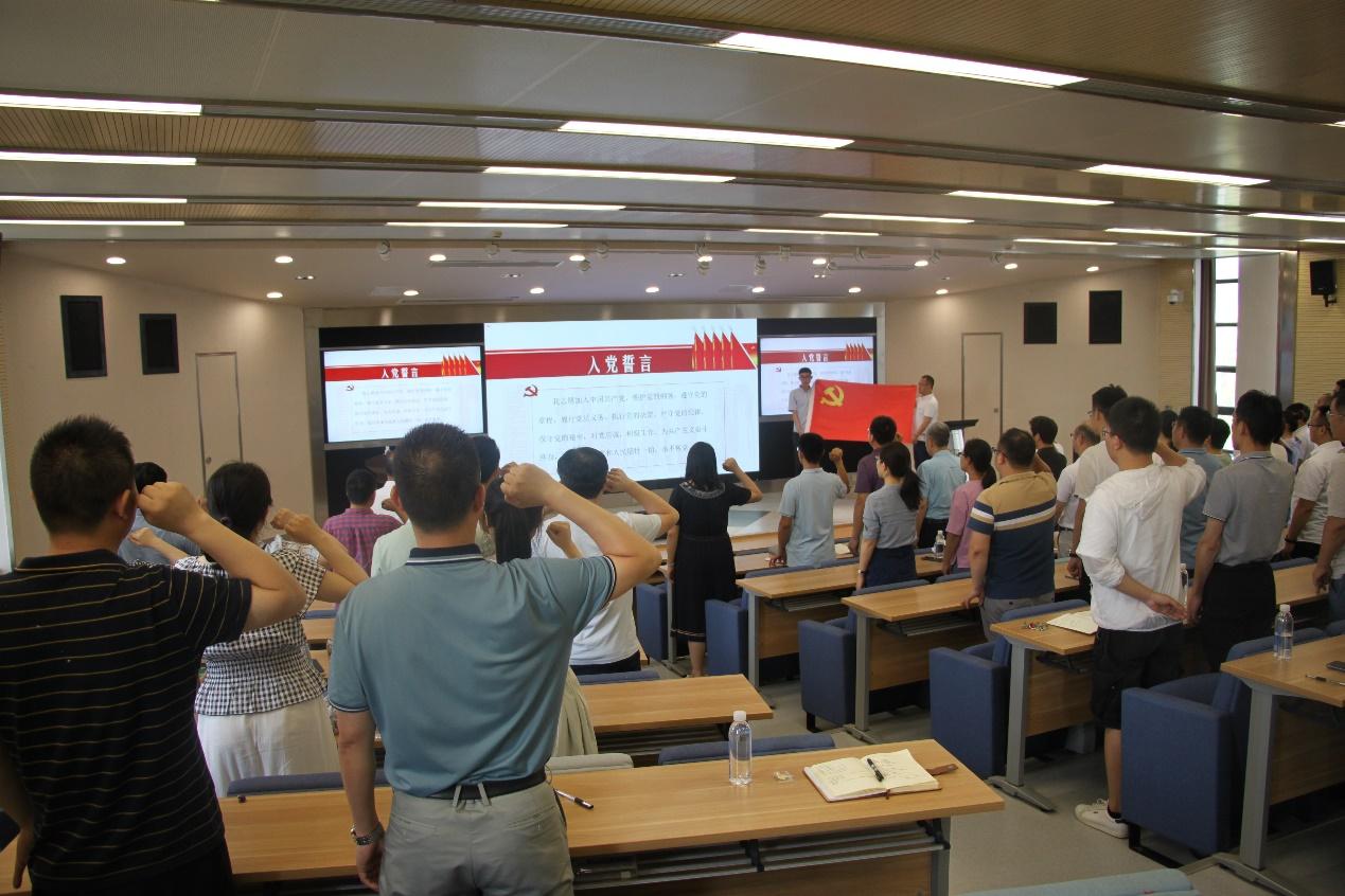 6月23日中午12时30分,88858cc永利官网党委在博二C202组织新党员开展入党宣誓、其他学生党员重温入党誓词,活动由辅导员钟珊珊主持。在庄严的国际歌后,全体党员举起右拳庄严宣誓。团委副书记陈博昊、能动19-4班鲍星海分别代表老党员、新党员发言,他们都表示在学习与生活中会努力发挥党员的先锋模范作用,为身边的同学带去积极的影响。借此机会,党委副书记于基伯对新老党员提出了四点要求:一是加强理论学习,深入学习党章,掌握党的理论并明确党员的作为和纪律;二是树立远大的理想,他表示作为学生党员更应该重新思考自己的定位,要努力投身于先进制造业中干实事、干实业,将自己学到的本领运用到科技发展和祖国建设中去;三是提高综合素质,要有意识地去提高自己的沟通表达能力和管理能力,成为合格的学科建设者和国家接班人;四是要提高安全意识,大到国家安全,小到宿舍安全,党员都应该发挥模范作用,带头消除存在的安全隐患。