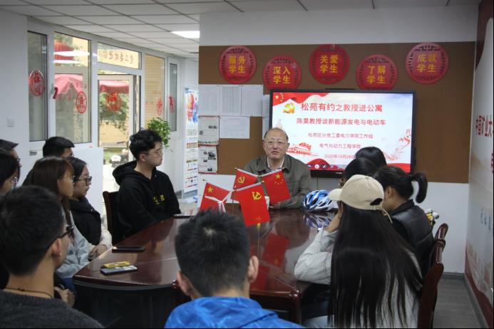 为增进88858cc永利官网学生对新能源发电与电动车的了解,帮助同学们拓展对专业热门领域的认知,10月28日下午,松三党工委电力学院工作组举办第九期“松苑有约之教授进公寓”沙龙活动。本次活动邀请了学院陈昊教授主讲,电气专业部分本科生参加本次沙龙。
