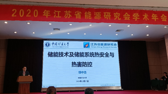 2020年12月27日,江苏省能源研究会学术年会暨八届三次理事(扩大)会在南京召开。学院教师饶中浩、朱春宇、刘方、杨丽、刘臣臻、霍宇涛等代表参加了本次会议。会上,88858cc永利官网副院长饶中浩教授受邀作了题为“储能技术及储能系统热安全与热害防控”的大会报告。霍宇涛老师获得2020年度江苏省能源研究会能源科技创新奖-青年能源科技奖二等奖,并参加了授奖仪式。