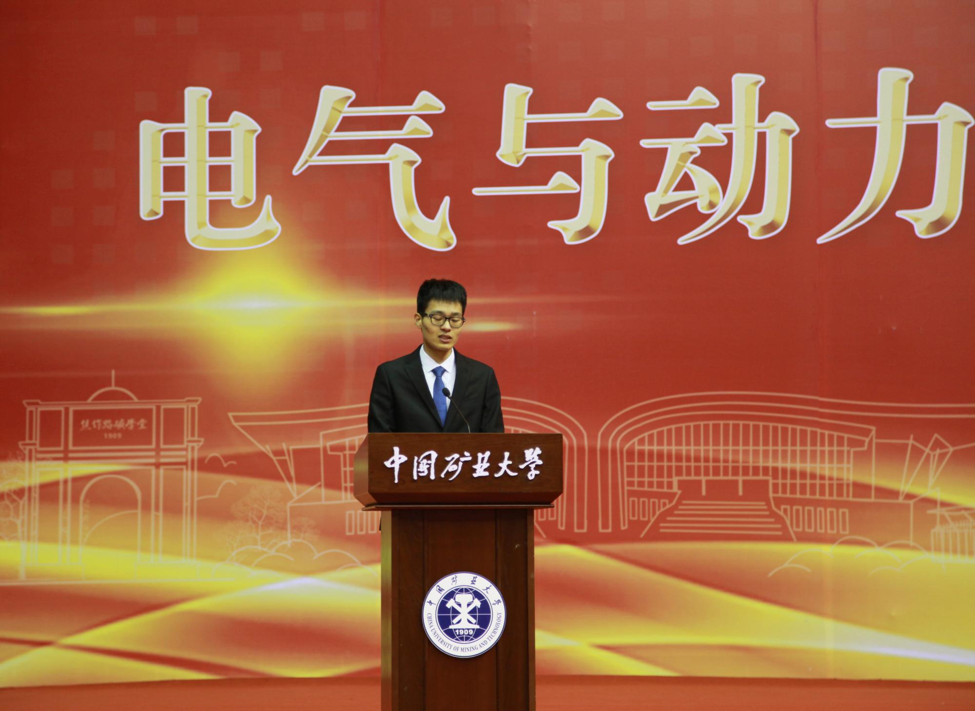 电气工程系副主任夏晨阳老师、博士研究生彭楠、电气16-8班章金、电气17-2班魏雨萱分别代表学院教师、优秀研究生、优秀本科生和先进集体发言。