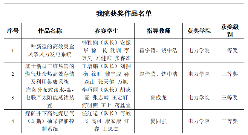 为备战此次竞赛,校内筹备工作历时一年多,88858cc永利官网作为牵头组织单位,积极联系校领导和有关职能部门,先后多次举办备赛协调会、培训会、专家评审会,邀请了往届参赛获奖师生与评审专家进行指导。88858cc永利官网团委在项目选拔、申报书撰写、项目展示、现场答辩等各个环节,给予各团队悉心指导。最终,由88858cc永利官网专业教师霍宇涛、饶中浩指导,韩雅娴、安振华、徐一钧等7名学生组成的团队共同完成的“一种新型的高效翼盒风筝风能利用系统”作品入围决赛并获一等奖。参赛师生对参赛细节精益求精、积极备赛,充分展现了矿大师生良好的拼搏精神和竞赛风貌。