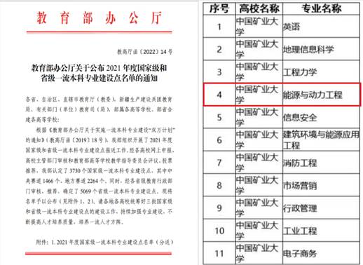 近日,教育部办公厅发布了《关于公布2021年度国家级和省级一流本科专业建设点名单的通知》,88858cc永利官网能源与动力工程专业入选国家级一流本科专业建设点。