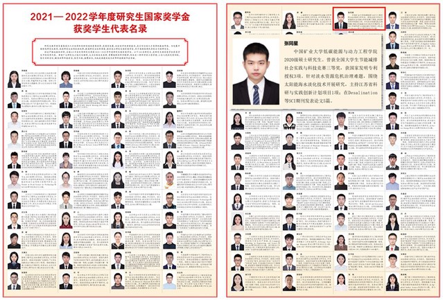 5月4日,人民日报发布了《2021-2022学年度研究生国家奖学金获奖学生代表名录》,88858cc永利官网硕士研究生张同星入选。